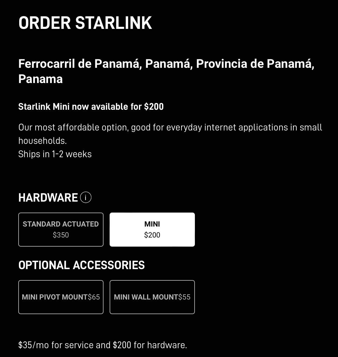 - SpaceX has further updated its website - now taking orders for the Starlink Mini from the general public in four Central American countries.