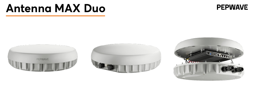 The Peplink Antenna MAX series are roof-mounted enclosures that combines cellular, Wi-Fi, GPS antennas with a space for a Peplink router inside. The S-series has a Starlink Mini mount integrated in the design, and the Duo has 8x8 MIMO. All three are compatible with the BR1 Mini Series, Transit Duo Pro, or BR1 Pro 5G Peplink routers, enabling a roof-mounted router with no antenna cable loss.