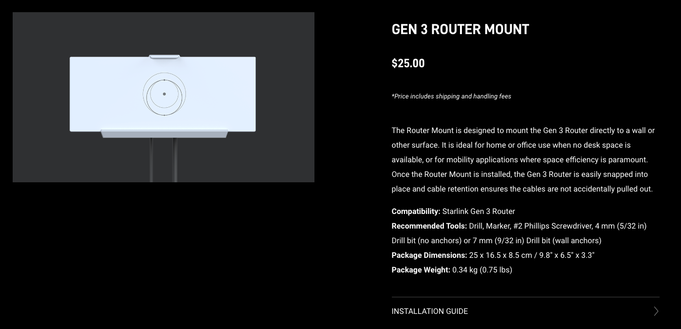 - Starlink Third Generation Mobility Mount (Must have a Starlink account and be logged in to purchase)
