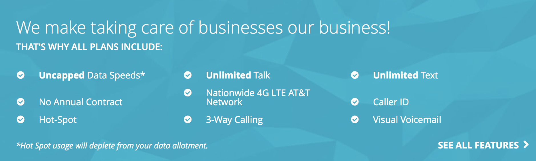 - $50/month: unlimited talk, text and 10 GB of unthrottled LTE data