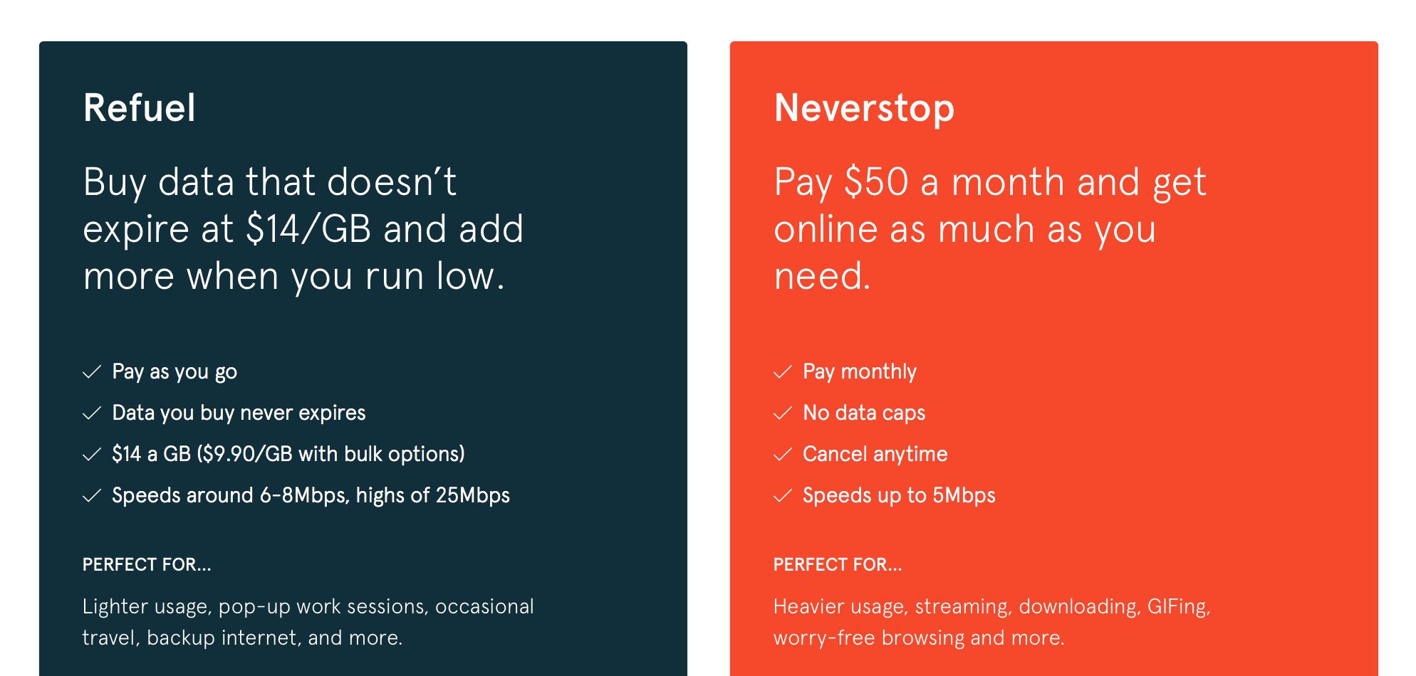 They've also revised what the service is 'perfect for' - "Daily usage, worry-free browsing, on-the-go work, travel, occasional streaming, and more."