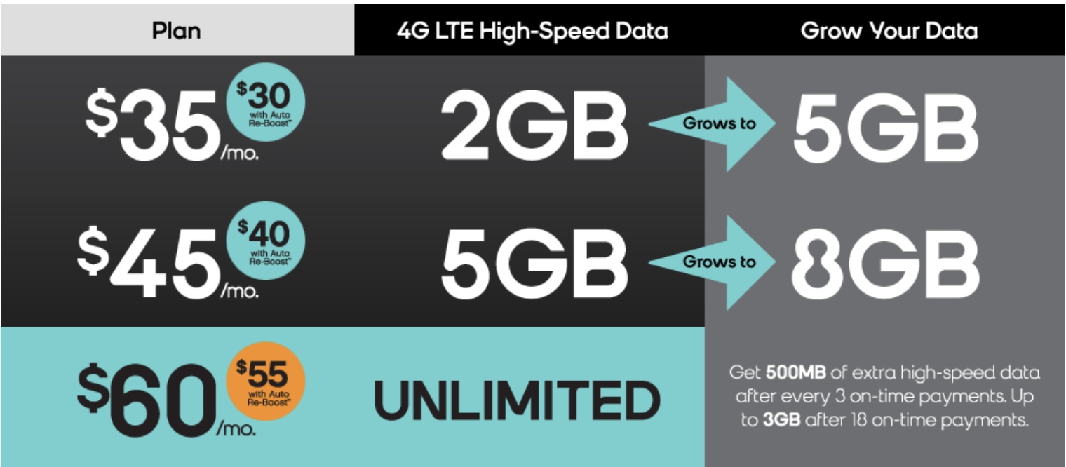 Other perks of Boost Mobile is that they give you a $5/month discount if you setup autopay, they include free roaming in Mexico, unlimited music streaming and on their capped smartphone plans they give you a data boost after 3 months of on-time payments.