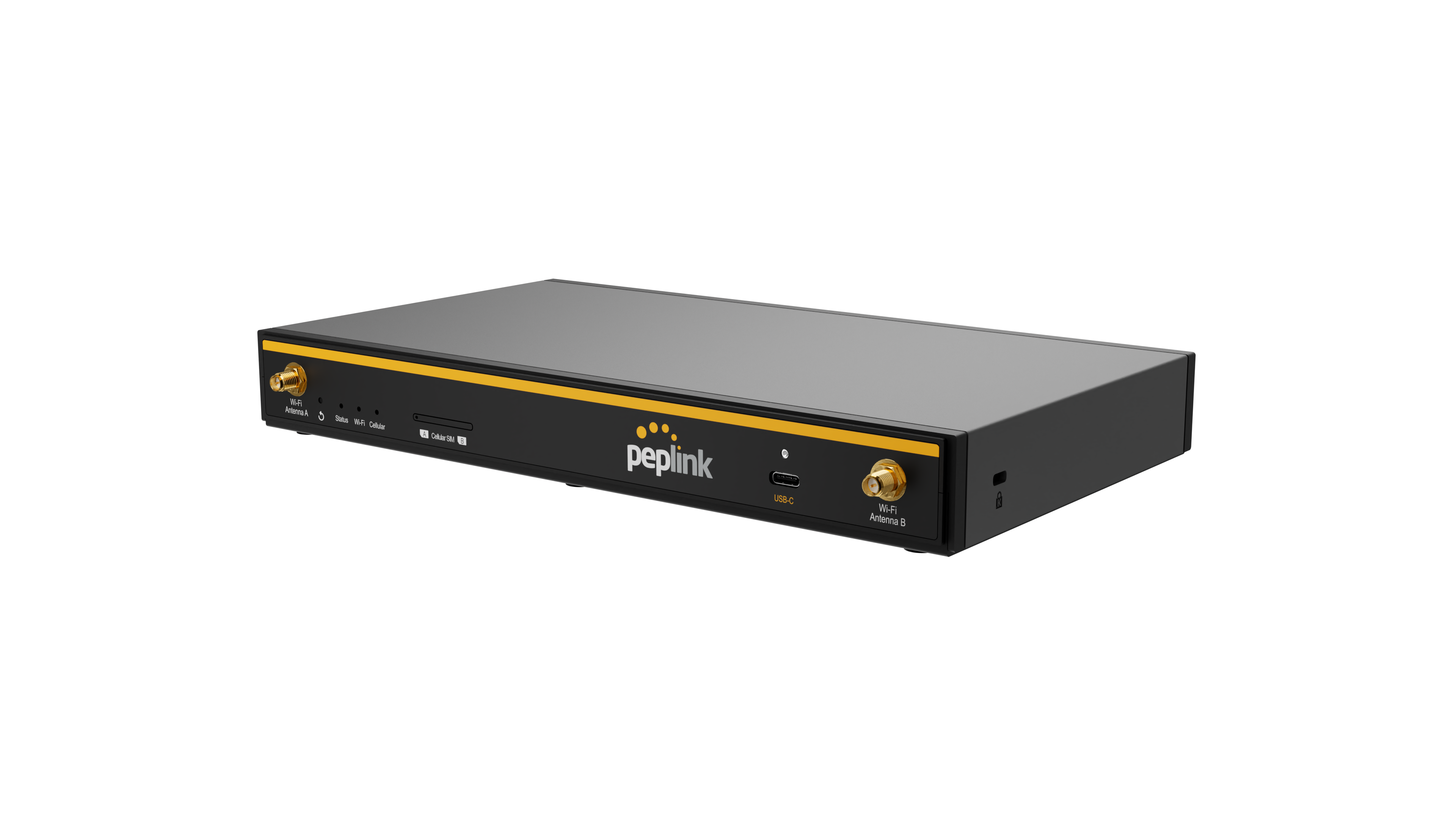 The B One 5G also has four cellular antenna ports and dual nano SIM slots for physical SIM cards, and it supports Peplink eSIM features.
