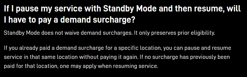 That has now changed, and Starlink’s current standby FAQ now states that Standby Mode no longer waives a demand surcharge - instead, it only preserves prior eligibility. In practical terms, that means if a surcharge was never paid for that specific location, one may now apply when service is resumed.