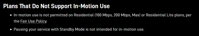 The most impactful change to our audience of nomads who work, live, and travel in vans, boats, and RVs is Starlink's recategorization of Standby Mode from an in-motion option to one "not intended for" in-motion use.
