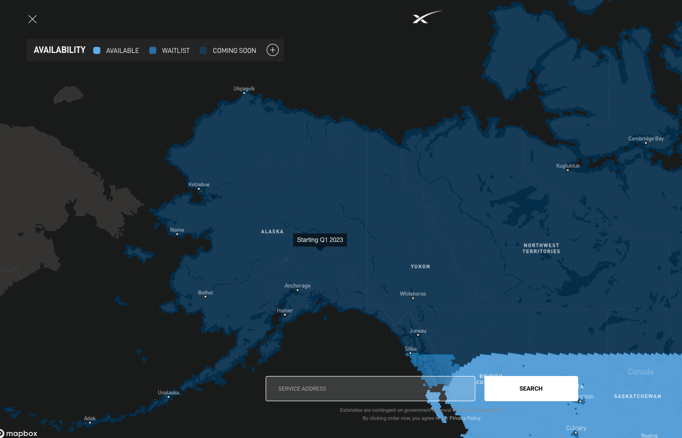 - Alaska and Northern Canada now have an updated timeline of starting service in Q1, 2023