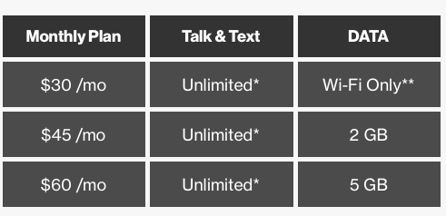 For $45 a month, they now include 2GB of data (previously 1GB), and for $60/month they include 5GB of data (previously 3GB). Both plans are eligible for a 1GB per month bonus if auto payment is setup, bringing the data allotments to 3GB and 6GB respectively.
