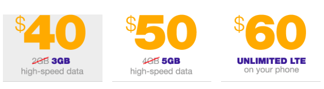 The $40/month plans now include 3GB of data a month (up from 1GB) and the $50/month plans include 5GB (up from 3GB).
